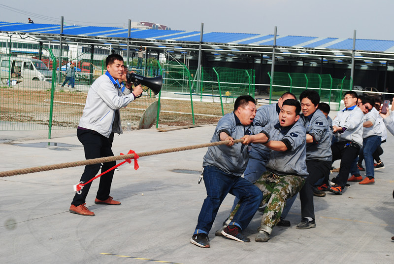 本次比賽共有8支代表隊,共計80名員工參加,比賽分為三個階段:淘汰賽、半決賽、決賽,淘汰賽實行一局決勝負的比賽模式,半決賽和決賽采取三局兩勝制,比賽現場氣氛熱烈,口號聲、加油聲震耳欲聾,各單位的拉拉隊員們都在奮力吶喊助威,啦啦隊員與場上選手的口號聲交融在一起,凝聚成一股堅不可摧的力量,體現出團隊力量的偉大。最終總裝車間二隊獲得此次拔河比賽冠軍,焊接車間一隊和二隊分獲二三名。