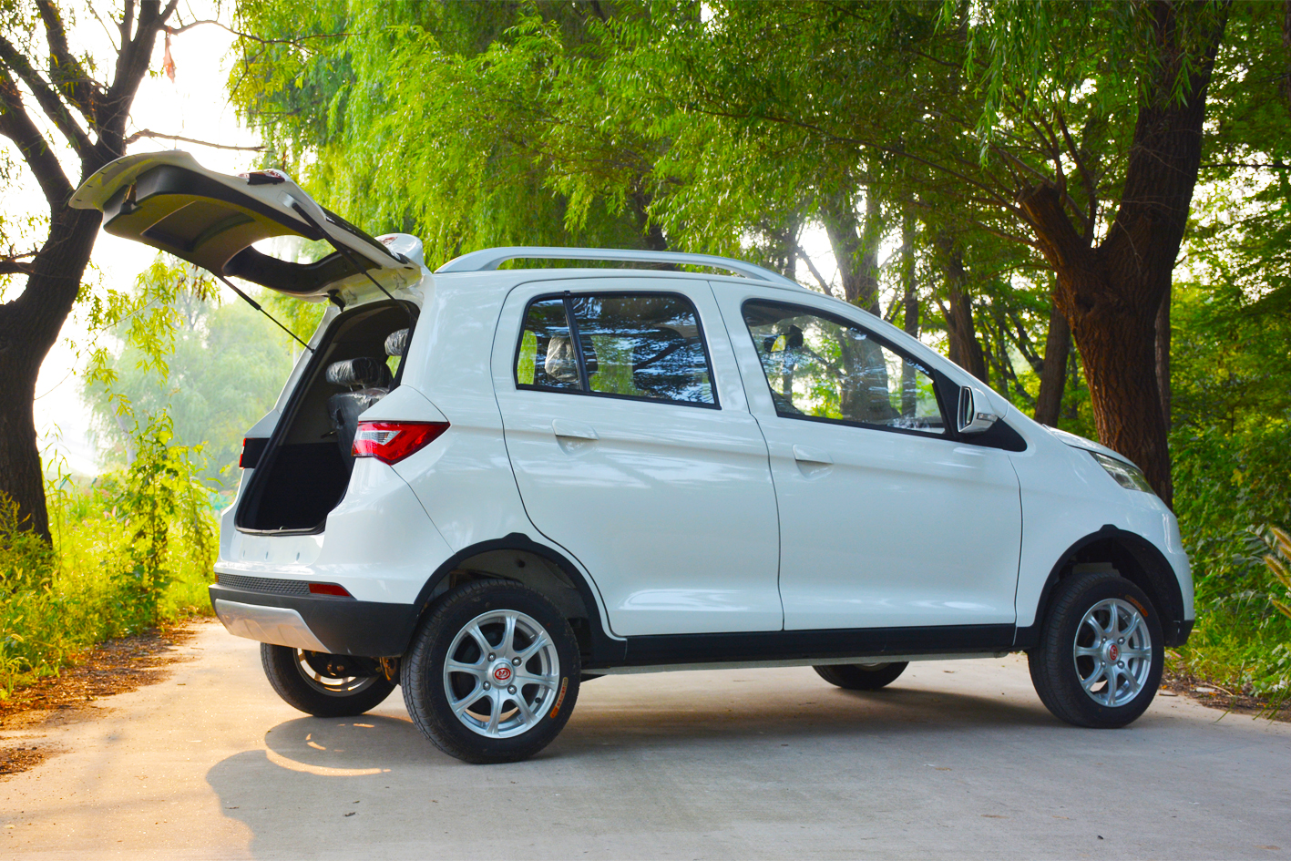在外觀造型方面,漢動Q3車身尺寸3440*1560*1530mm,車身更寬,更高,空間寬敞,讓您尊享舒適。其大燈采用獨特鷹眼式設計,造型簡潔凌厲,遠近光一體式透鏡大燈將日間行車燈集成于一體,極大的提高夜間光照亮度,下方的高亮霧燈,更是保證了大霧天氣下的行駛安全性。整車線條粗獷硬朗,盾形的格柵搭配四道凌厲的前機蓋棱線,賦予整車前部雕塑般的美感;富有沖擊力的輪眉及精致亞黑側裙設計,配合貫穿車體的凌厲腰線設計及13寸路合金輪轂,無不體現漢動Q3飽滿的SUV運動激情,越野范兒十足,盡顯SUV狂野大氣。