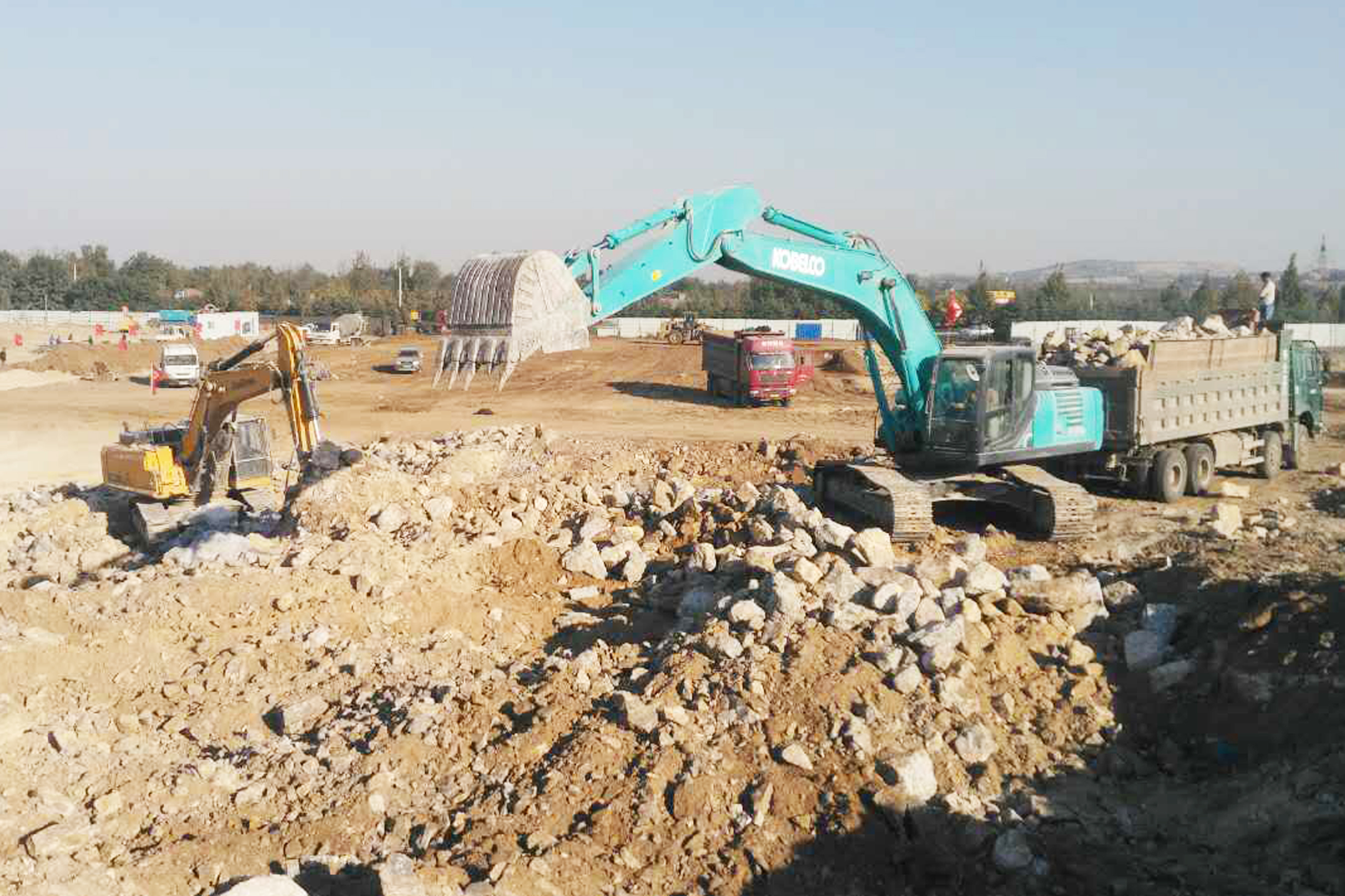 風檣動,龜蛇靜,起宏圖!工程車川流不息、挖掘機揮鏟揚土、強夯機轟隆作響,運輸車疾駛而過,爆破聲震耳欲聾,漢唐電動汽車千畝產業園區內呈現出一派熱火朝天的景象。
