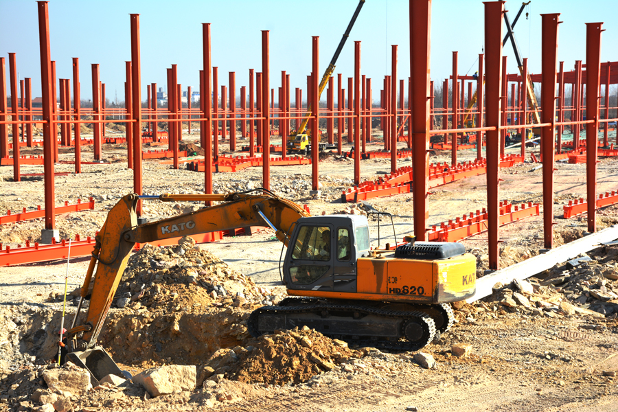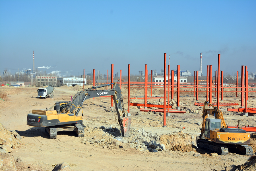 日前,氣溫已下降到零下5攝氏度,但是漢唐千畝工業園施工現場卻呈現出一片熱火朝天的忙碌景象。工程車川流不息、挖掘機揮鏟揚土、強夯機轟隆作響,運輸車疾駛而過,全體參建人員不畏嚴寒,穿梭于各施工部位,土建工區、機械工區各項施工有條不紊地進行著。