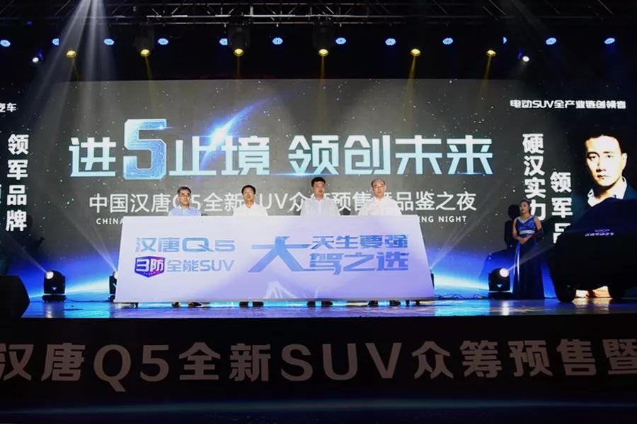 7月17日晚,以“進5止境 領(lǐng)創(chuàng)未來”為主題的漢唐Q5全新SUV眾籌預售品鑒之夜活動在山東濰坊隆重舉行,來自全國的300余家戰(zhàn)略經(jīng)銷商齊聚一堂,共同見證了這款全新SUV座駕的耀目面世。